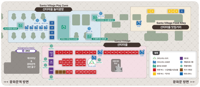 광화문 마켓은 산타 마을 구역에 배치되며, 시즌제로 총 3시즌으로 구성됩니다. 마켓은 핸드메이드 상점과 크리스마스 상품 & 먹거리 상점으로 다양하게 구성되어 있으니 볼거리가 참 많겠죠? 12월 21일부터 28일까지 진행되는 시즌 2에 오픈되는 마켓에는 시즌1에서 만나보지 못했던 새로운 상점들도 있으니 확인해보세요!